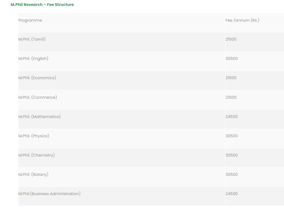 The minimum eligibility for admission to M.Phil Commerce at The American College Madurai is Post Graduation.