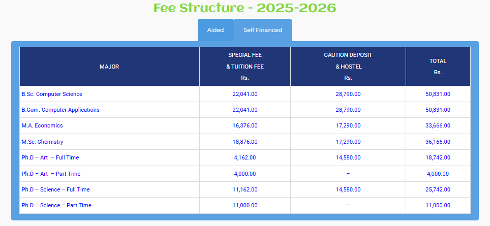 Vivekananda College Madurai MA Economics fees 2025 is ₹ 33,666 for the entire course duration.