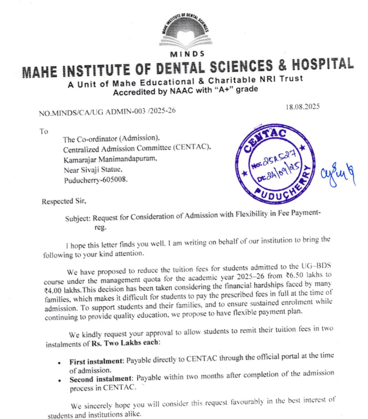 | Reporting / Joining for Stray Vacancy MCC NEET UG [BDS] | Oct 19, 2025 - Oct 25, 2025 |