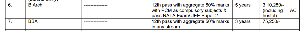| Fees (2025 - 2026) | Year 1 (in INR) | Year 2 (in INR) | Year 3 (in INR) | Year 4 (in INR) | Year 5 (in INR) |