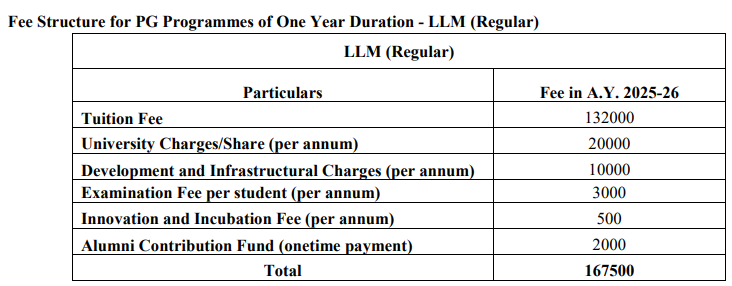 FEE STRUCTURE AS PER OFFICIAL WEBSITE
