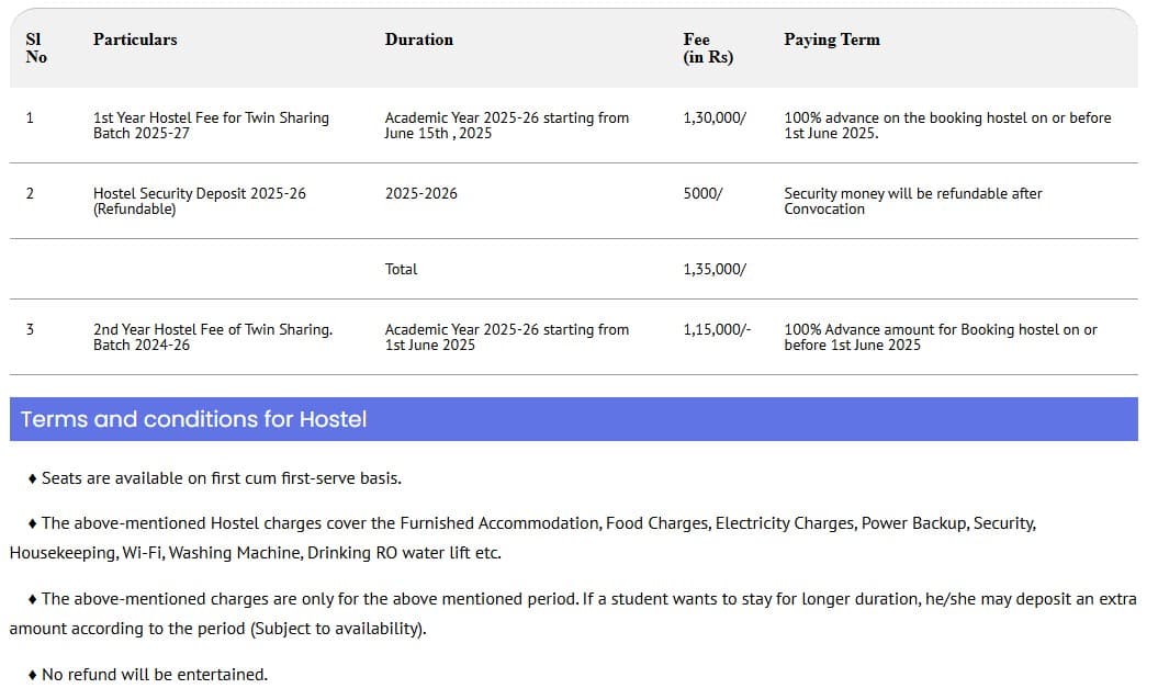Hostel facilities to be improved. I was there for my first year 2023-24 the vendor at that time was not good, faced problems in food and facilities.