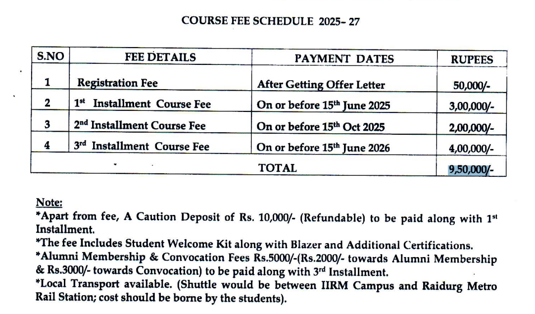 | Total Fees (2025 - 2026) | ₹9.5 Lakhs |