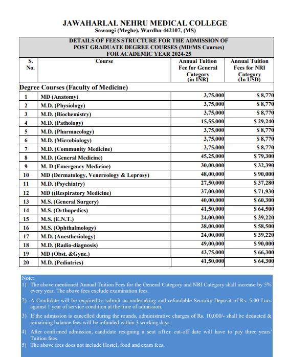 JNMC Hostel Fee is ₹ 1.52 Lakhs to 1.86 Lakhs.