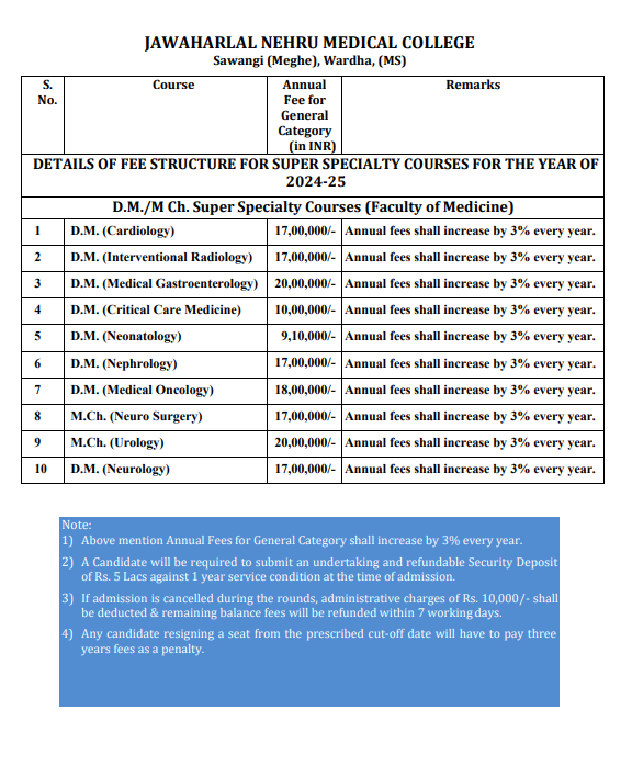 JNMC offers a total of 1 seats for M.D Neonatology. Admissions are offered based on NEET-SS. Check JNMC Admission 2025