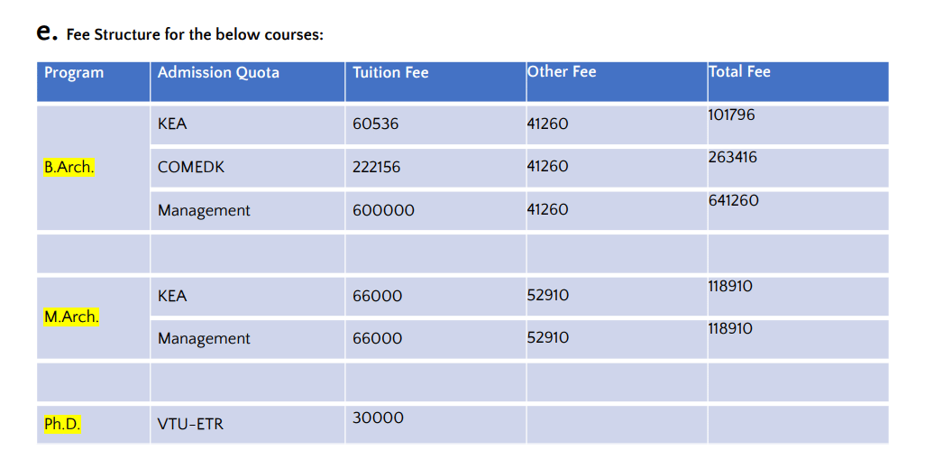 RV College of Architecture Bangalore Hostel Fee for Male is ₹ 1.59 Lakhs to 1.96 Lakhs. Hostel Fee for Female at RV College of Architecture Bangalore is ₹ 1.59 Lakhs.