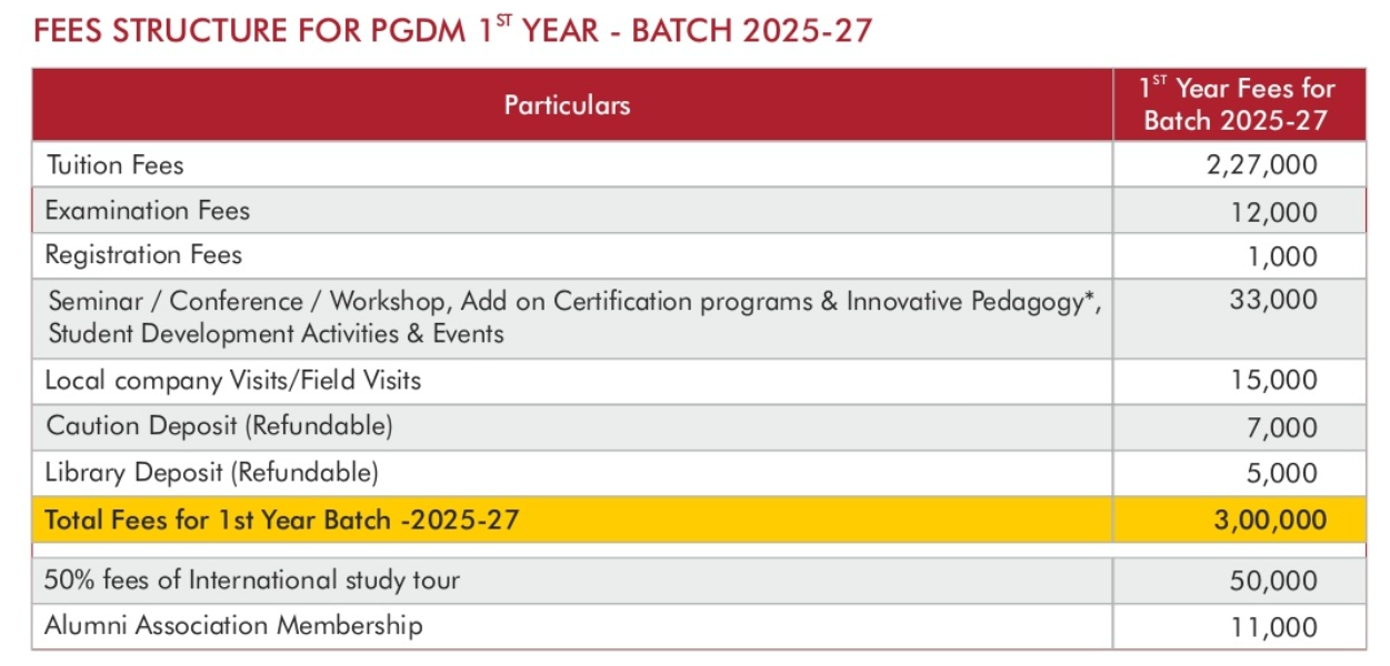 | Fees (2025 - 2026) | Year 1 (in INR) | Year 2 (in INR) |