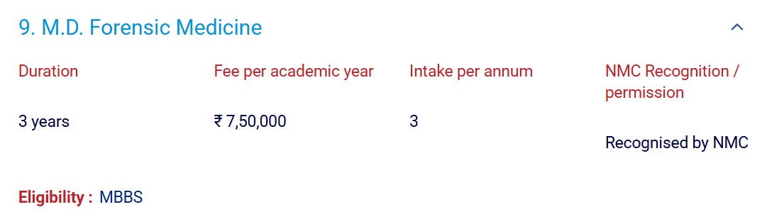 The minimum eligibility for admission to M.D Forensic Medicine at SRMC Chennai is MBBS. Candidates are allotted seats based on NEET-PG.