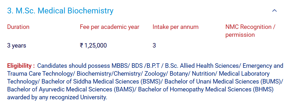 SRMC Chennai offers a total of 3 seats for M.Sc Medical Biochemistry. Check SRMC Chennai Admission 2025