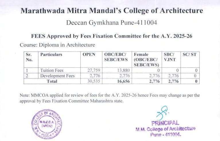 Marathwada Mitramandal's College of Architecture Pune Diploma Architecture: Fees 2025, Course Duration, Dates, Eligibility
