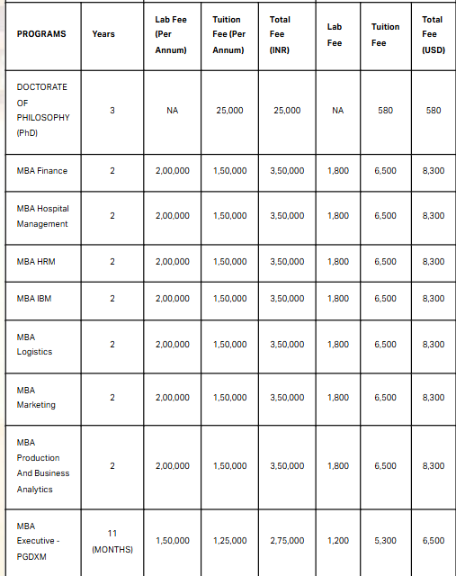 | Fee Type | Total Amount (INR) |