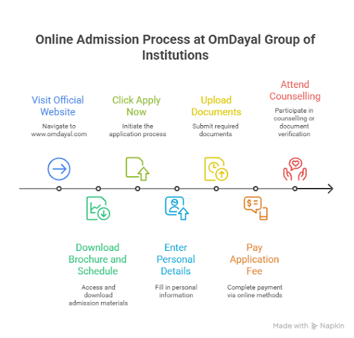 Admission at OmDayal Group of Institutions, Kolkata, occurs based on an entrance examination or academic merit, depending on the program. Students wishing to pursue Engineering will be selected by WBJEE or JEE Main, and are required to participate in centralised counselling by WBJEEB or institute-level counselling.