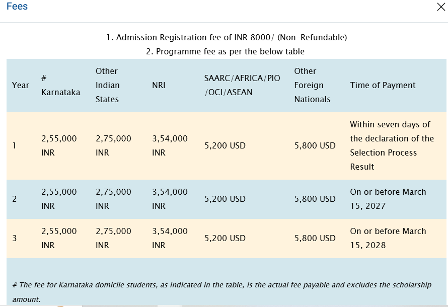 - Candidates need to pay ₹ 2.83 Lakhs in the first year.