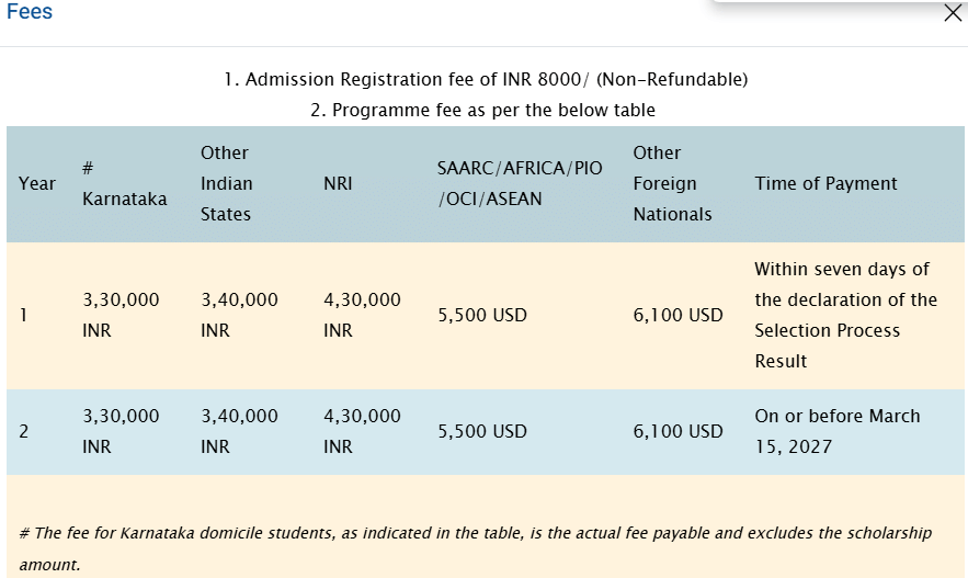 - Candidates need to pay ₹ 3.48 Lakhs in the first year.