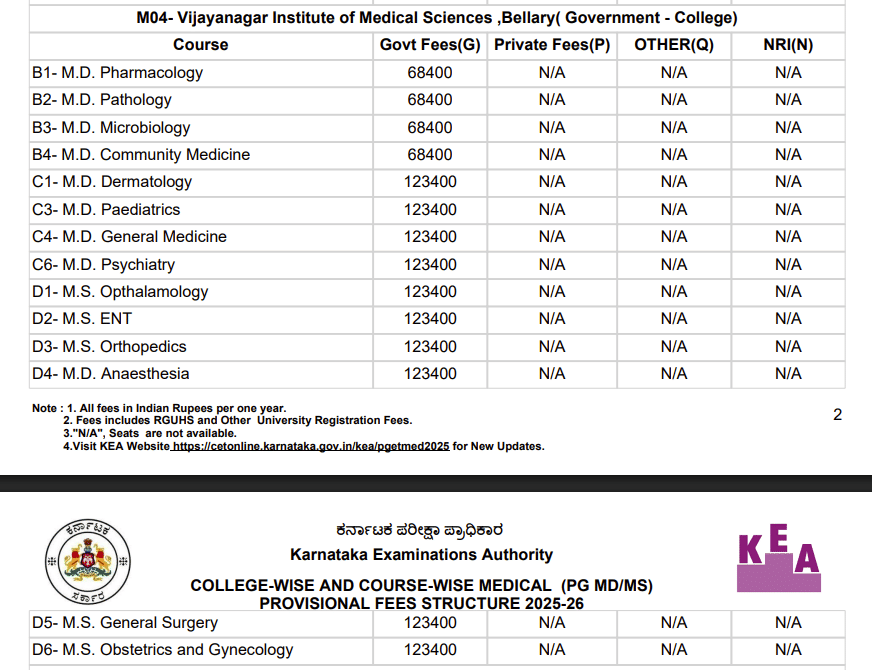 - Vijayanagar Institute of Medical Sciences Bellary Hostel Fee is ₹ 10,000.