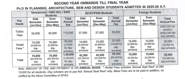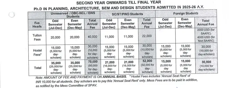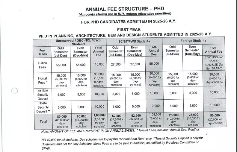 Earlier, Ph.D Architecture fees at SPA Vijayawada was ₹ 1.62 Lakhs (in 2020) for the entire course duration. This shows a fee increase of ₹ 1.74 Lakhs over the year.