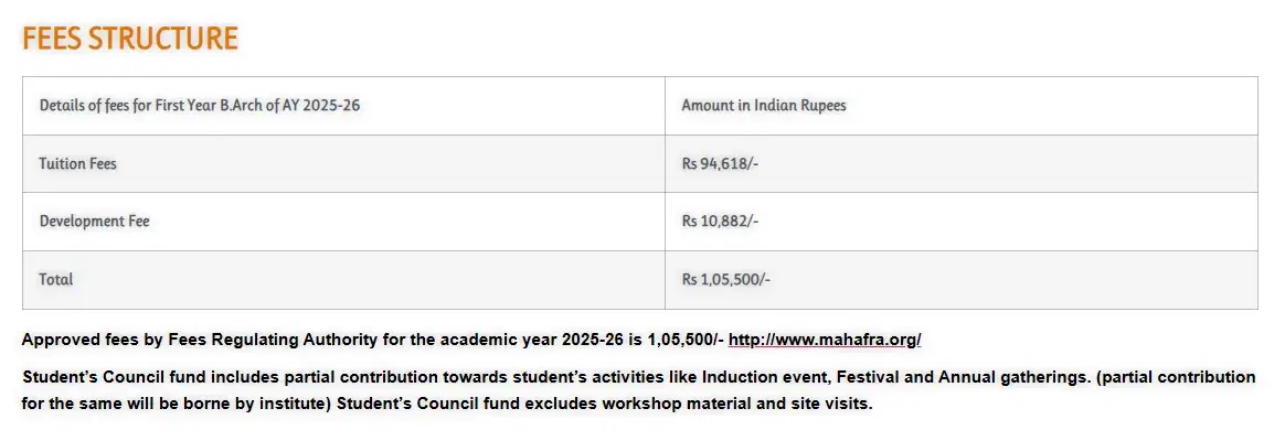 Shri Prince Shivaji Maratha Boarding House's College of Architecture Kolhapur M.Arch Architectural Project Construction Mangement fees in first year is ₹ 1.06 Lakhs. The detailed fees is mentioned below.Admissions are offered based on MAH-M-Arch-CET.
