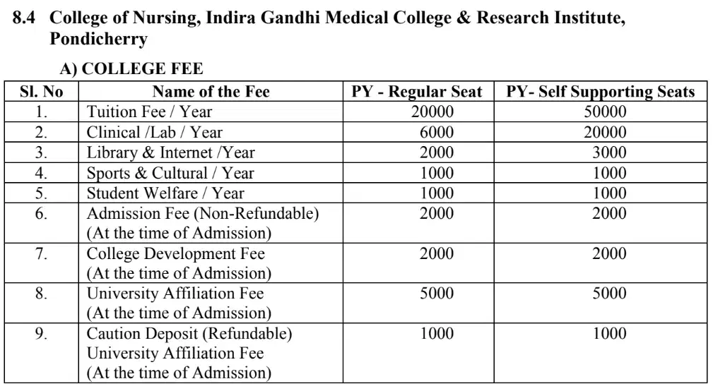 IGMCRI Pondicherry B.Sc (Nursing) Nursing fees 2025 is ₹ 1.31 Lakhs for the entire course duration.