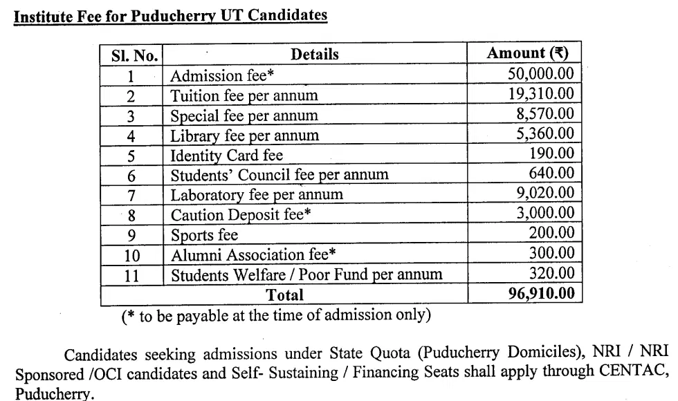 | Fee Type | Total Amount (INR) |