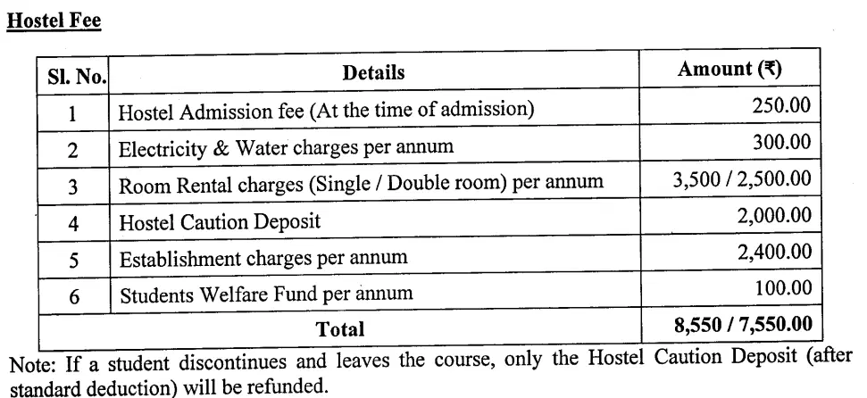 I was a day scholar but the hostel is pretty nice, with the hostel fees around 6,000 per year. Mess fees is paid monthly which comes to about 2,500 per month. Till 3rd year you share a room from final year you get an individual room in the ladies hostel
