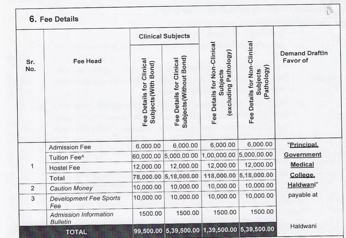- GMC Haldwani Hostel Fee is ₹ 6,000.