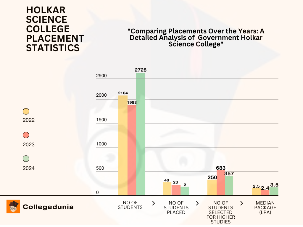 Government Holkar Science College Placement 2025 report has not been released yet. However, as per the NIRF report 2024, the median salary package offered to the placed students was INR 3.5 LPA, while in 2023, it was INR 2.4 LPA. As per the students review on Collegedunia, TCS, Wipro, Infosys, HCL, and many more are the past recruiters at Government Holkar Science College Placement.
