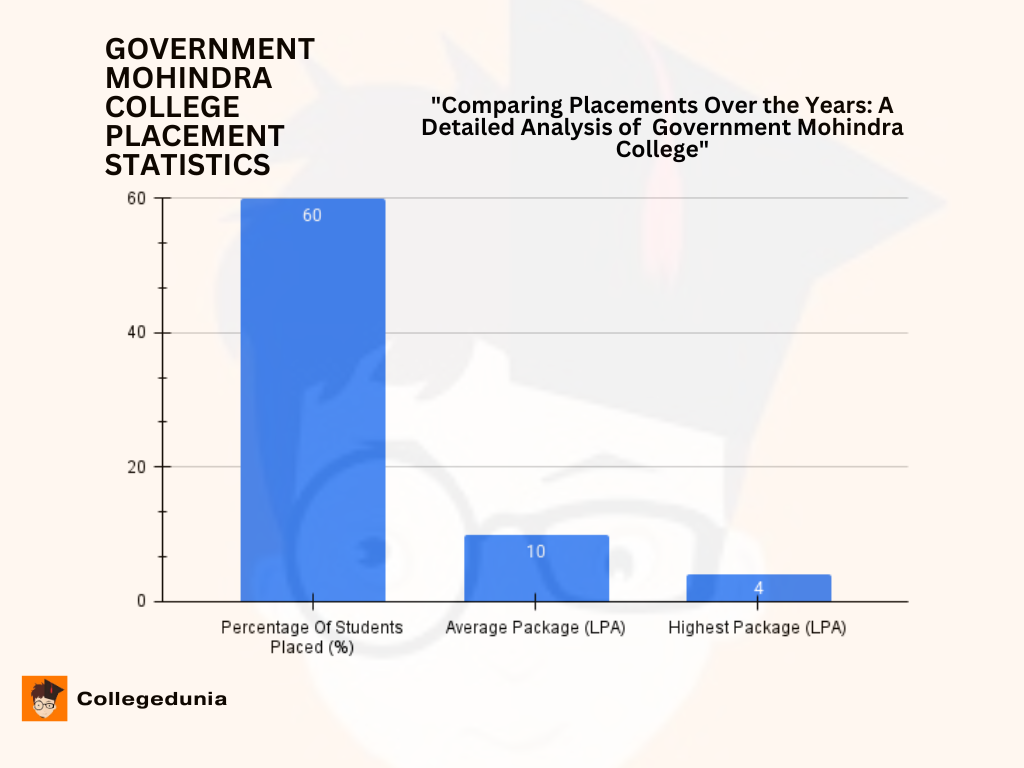 Government Mohindra College Placement 2025 report has not been released yet. However, as per Anmol Singh's review on Collegedunia, the student became eligible for placement after three years. The highest package offered was INR 10 LPA, with an average package of INR 4 LPA based on student profiles. Around 60% of students got placed. Some students also pursued jobs through off-campus opportunities. Infosys, Mahindra, Dell and many more are the top recruiters at Government Mohindra College Placement.