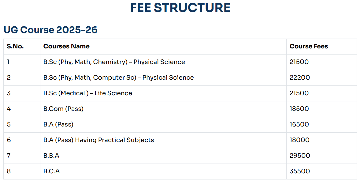 | Fees (2025 - 2026) | Year 1 (in INR) | Year 2 (in INR) | Year 3 (in INR) |