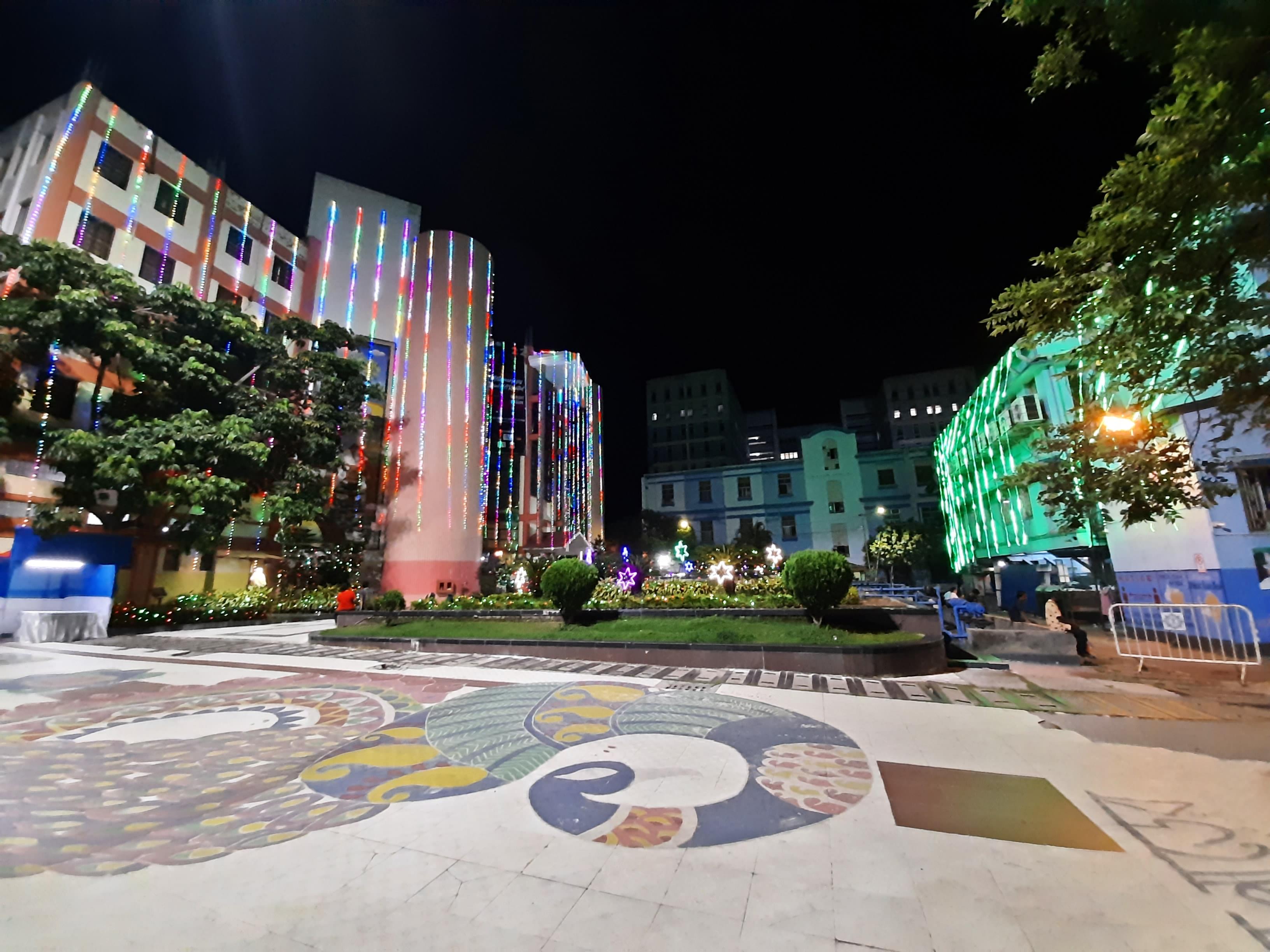Platinum Jubilee Building, inside the Lecture Theatre, Large Auditorium and its Front Garden, PJB Garden with designed Grass Cutting, Flowers and the Fountain