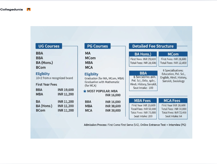 DDCE MCom Fees 2025- 2026 First Year Fees are INR 16,000. The Seats Intake for MCom Course is 200. For MCom admission, candidates need a Bachelor's degree from Utkal University or Equivalent. Selection of the candidates is done on the basis of an Online Entrance test conducted by Utkal University, followed by an Interview. The detailed fee structure of the MCom course is mentioned below.