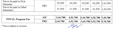 - This includes a total tuition fee of ₹ 3 Lakhs, Caution Fees of ₹ 5,000, Other Fees of ₹ 15,700.