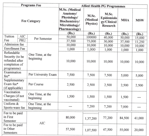 - This includes a total tuition fee of ₹ 3 Lakhs, Caution Fees of ₹ 20,000, Other Fees of ₹ 1.29 Lakhs.