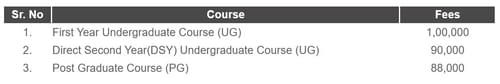 The annual tuition fee is Rs 90,000, with a Rs 2,000 registration fee, paid in two installments. Scholarships are accessible for EBC, Dr. Punjabrao Deshmukh Vastigruha Nirvaha Bhatta Yojana, GOI, and minority students, with specific provisions for VJNT, OBC, SC, ST, and SBC categories. SC/ST students pay a reduced fee of Rs 9,000 annually, while OBC students pay Rs 51,000. SCBC students receive a 50% fee waiver, equal to a Rs 45,000 scholarship yearly. Admission through management requires a Rs 2,50,000 donation and a Rs 90,000 annual fee for four years.