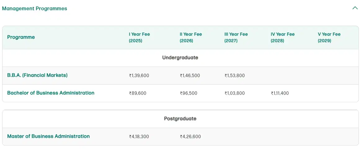 | Fees (2025 - 2026) | Year 1 (in INR) | Year 2 (in INR) |