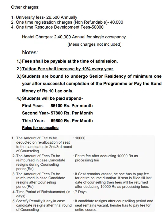 | Fees | Year 1 (in INR) | Year 2 (in INR) | Year 3 (in INR) |