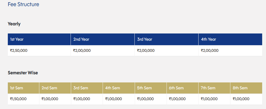 - Candidates need to pay ₹ 2.5 Lakhs in the first year.