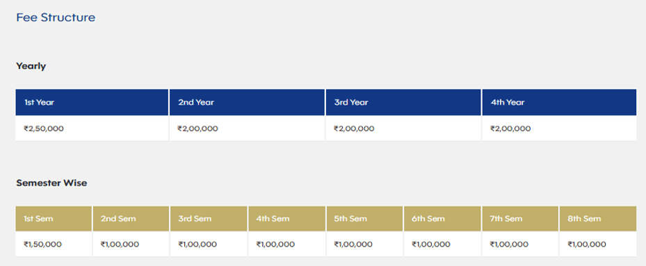 - Candidates need to pay ₹ 2.5 Lakhs in the first year.