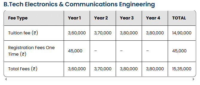 | Fees (2025 - 2026) | Year 1 (in INR) | Year 2 (in INR) | Year 3 (in INR) | Year 4 (in INR) |