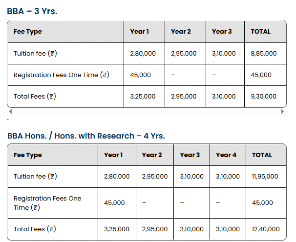 | Fees | Year 1 (in INR) | Year 2 (in INR) | Year 3 (in INR) |
