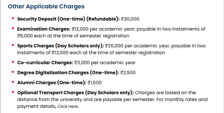 | Alumni Charges | ₹1500 | - | - |