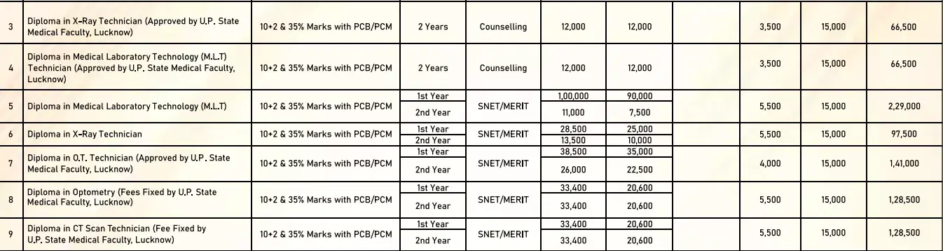 Earlier, Diploma X-Ray Technology fees at Netaji Subhash Chandra Bose Subharti Medical College Meerut was ₹ 66,000 (in 2024) for the entire course duration. This shows a fee increase of ₹ 31,500 over the year.