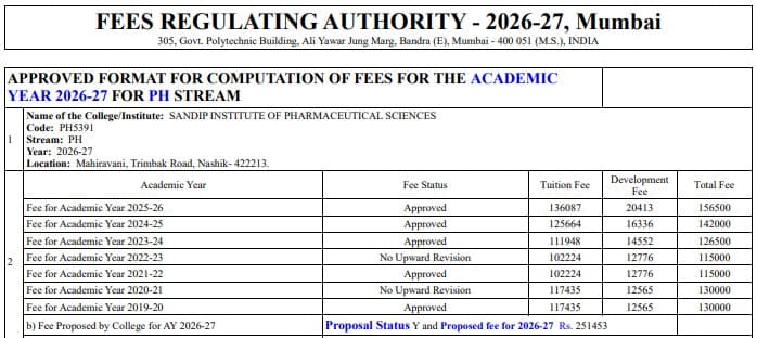 OBC students pay around Rs. 71,000 after scholarships, while general category students pay about Rs. 1.27 lakh. NT-D category students' fees are Rs. 15,500 in the first year, decreasing in subsequent years, with additional scholarship support. The Maharashtra government offers a scheme for girls, reducing fees to Rs. 15,000. Additional costs include materials like journal books and uniforms. Batchmates' fees vary: Rs. 1.50 lakh for open category, Rs. 75,000 for OBC and EWS, and Rs.