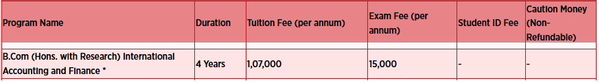 FEE STRUCTURE AS PER OFFICIAL WEBSITE