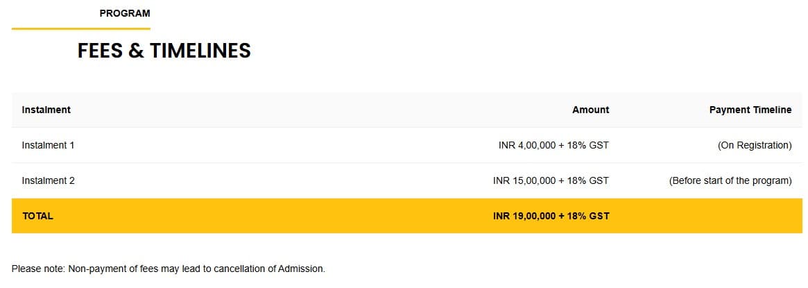 | total fees | ₹ 19 Lakhs |