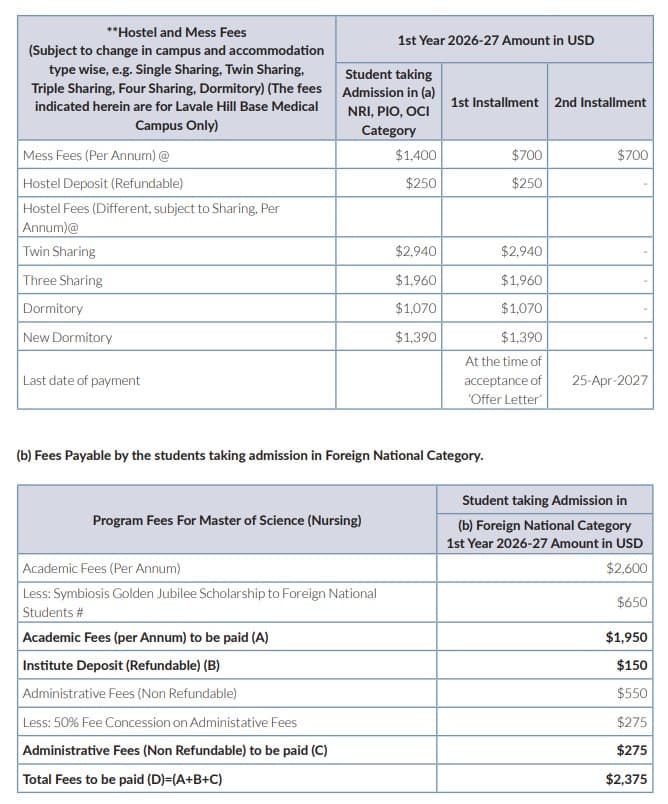 Earlier, PG Program Nurse Practitioner Critical Care fees at Symbiosis College of Nursing Pune was ₹ 2.84 Lakhs (in 2025) for the entire course duration. This shows a fee increase of ₹ 3.23 Lakhs over the year.
