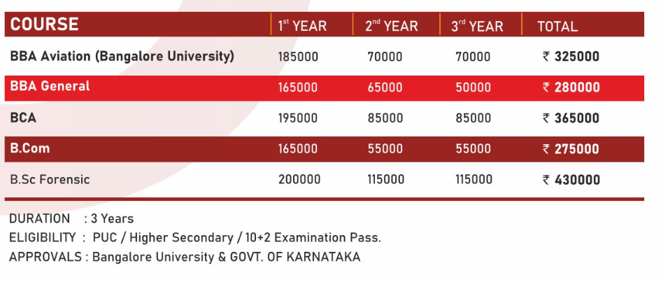 | Fees (2024 - 2025) | Year 1 (in INR) | Year 2 (in INR) | Year 3 (in INR) |