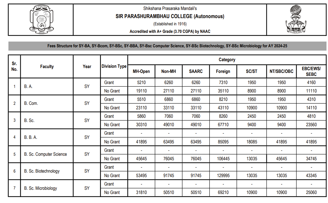 The college is known for its affordable fee structure, ranging from 2,000 to 5,000 INR, making it accessible for students from various economic backgrounds. B.Com has the lowest fees, with scholarships available to further reduce costs, especially for girls and students from backward classes. Fees for government-aided courses are significantly lower compared to non-granted ones. Scholarships can reduce fees by up to 70%, and special scholarships promote gender inclusivity. SP College provides various job and placement opportunities, particularly for postgraduate students.