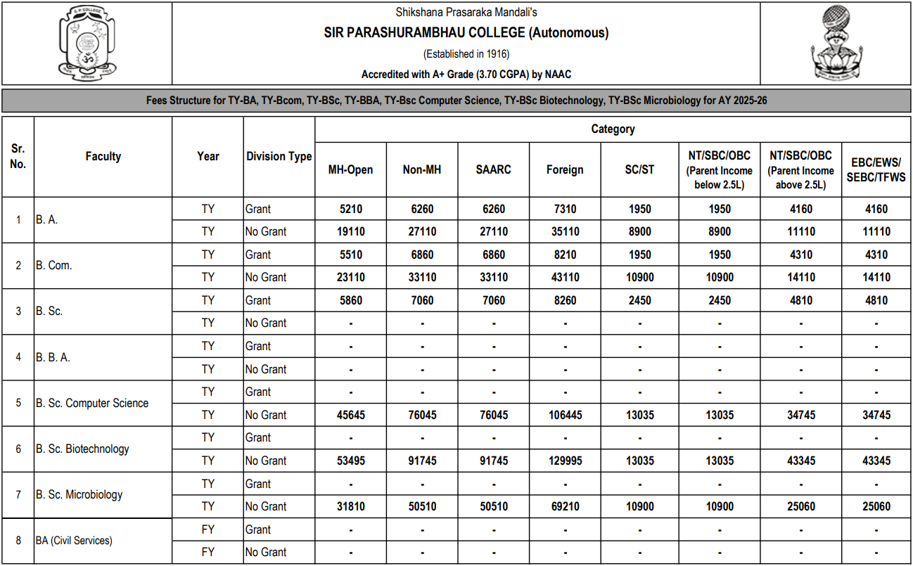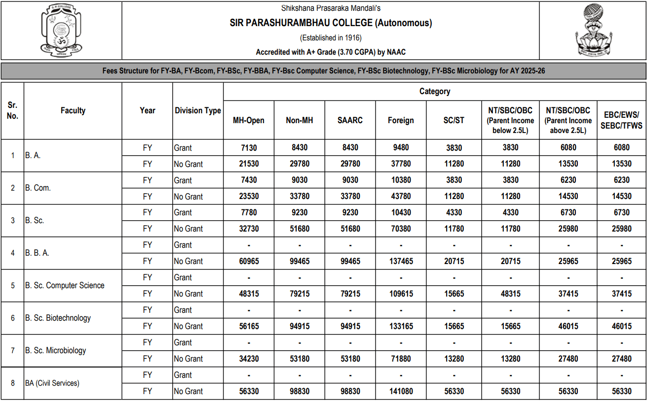 Yearly fees are approximately 46,000 INR, with SC/ST students eligible for a 20,000 INR scholarship. Students from outside Maharashtra face annual fees of around 60,000 INR.