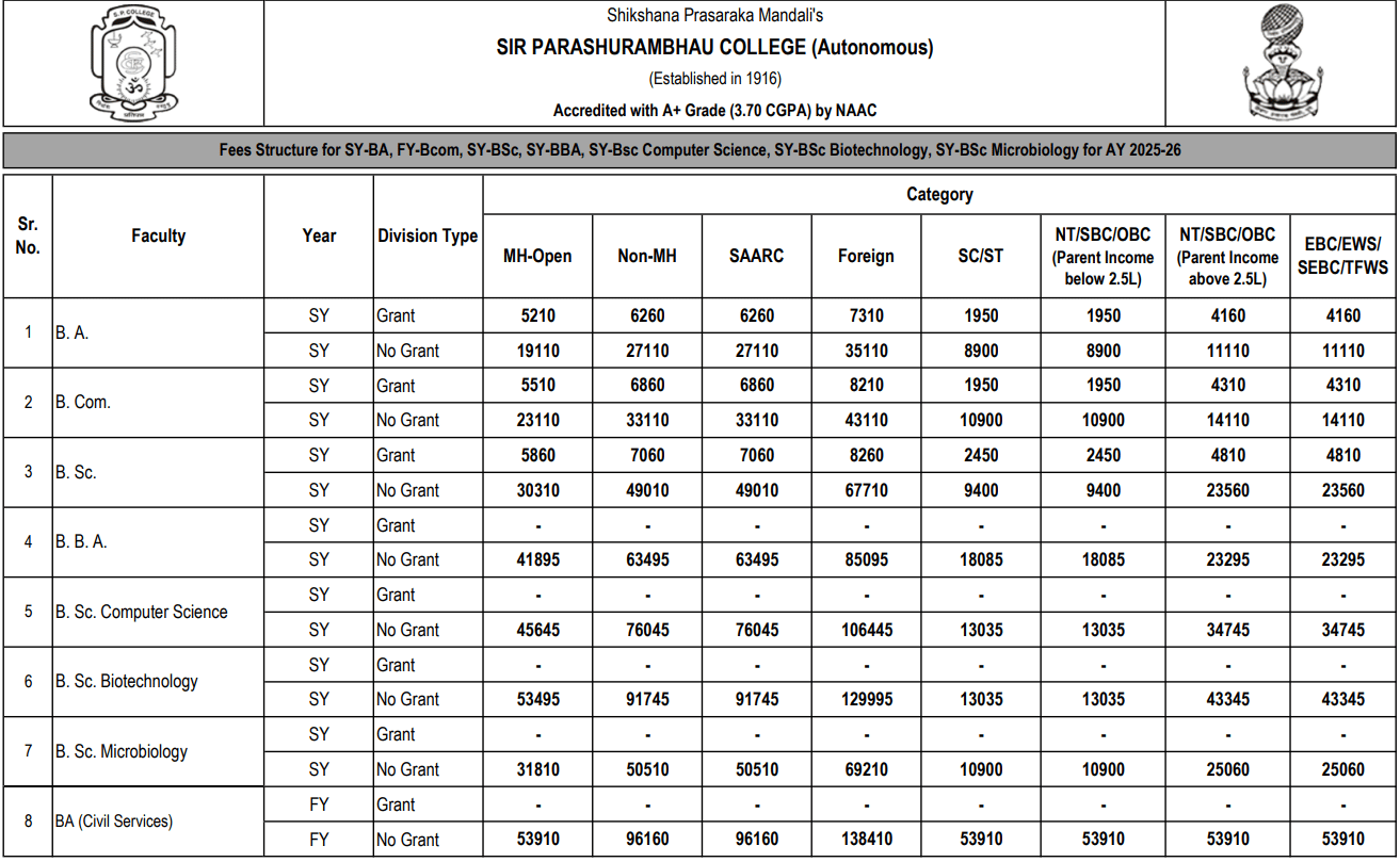 The admission process at SP College requires online registration through vriddhi.com, where candidates create a login ID and complete a merit form. Admission progresses after the applicant's name appears on the merit list, involving an online form submission to the college. The college has about 250 experienced faculty members, including PhD holders and IIT alumni, many of whom are involved in research. The college offers a B.Sc program with a fee structure of under 6,000 INR for grant admissions and 24,000 INR for non-grant admissions.