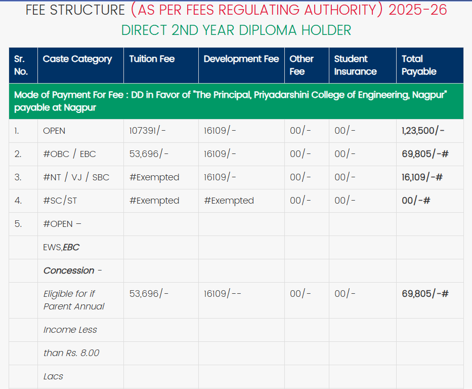 14 Aug, 2025 PCE Nagpur has released the Fee Structure 2025-26 for B.Tech {Lateral} Aeronautical Engineering program. The total academic fee is ₹ 3.71 Lakhs.